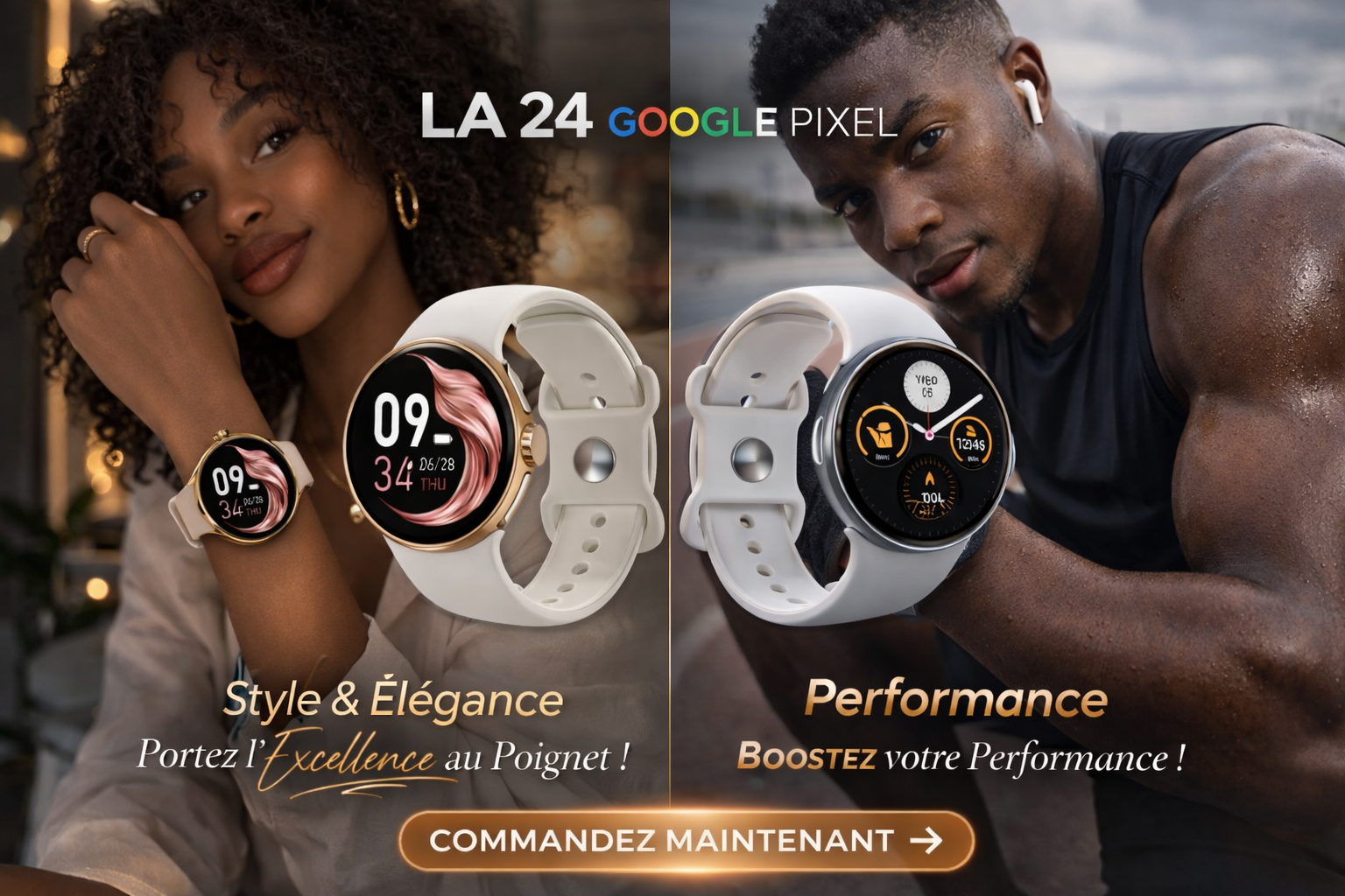 LA24 Smartwatch, montre connectée avec écran AMOLED de 1,3 pouces, montre Google Pixel pour hommes et femmes.